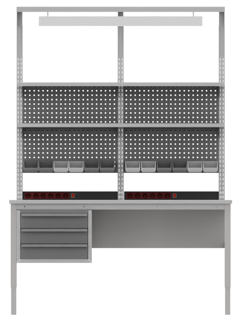 Высококачественные резьбовые муфты, встроенные в столешницу, позволяют многократно собирать и разбирать рабочие места без потери прочности конструкций. Возможность установки аналогичных столов данной серии вплотную друг к другу для экономии рабочего пространства.