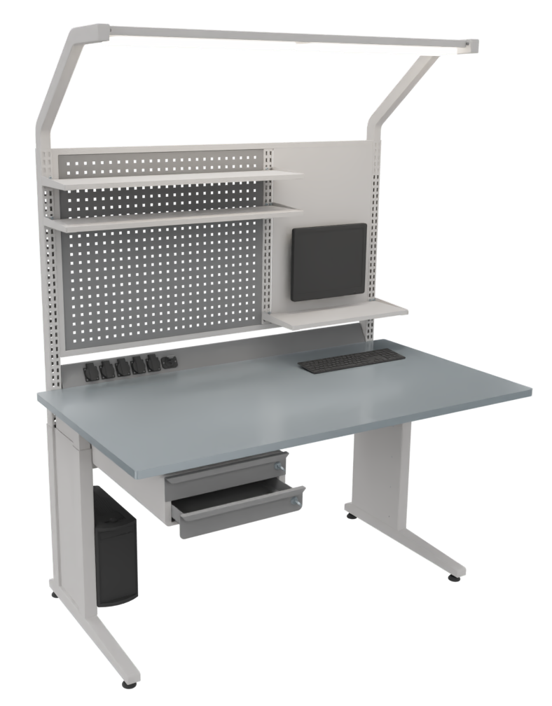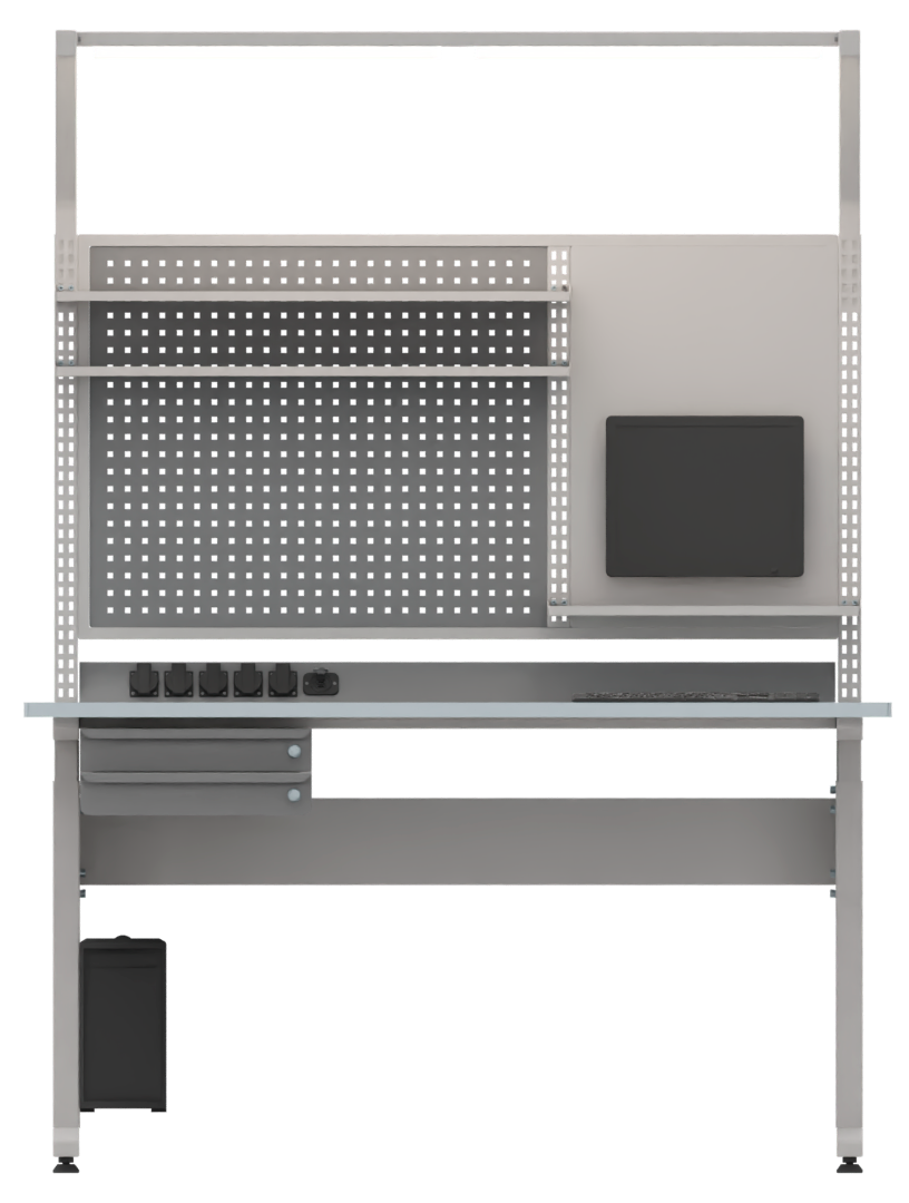 отличается универсальностью конструкции, что позволяет устанавливать множество дополнительных модулей и аксессуаров. Это дает возможность адаптировать рабочее место под широкий спектр производственных задач.